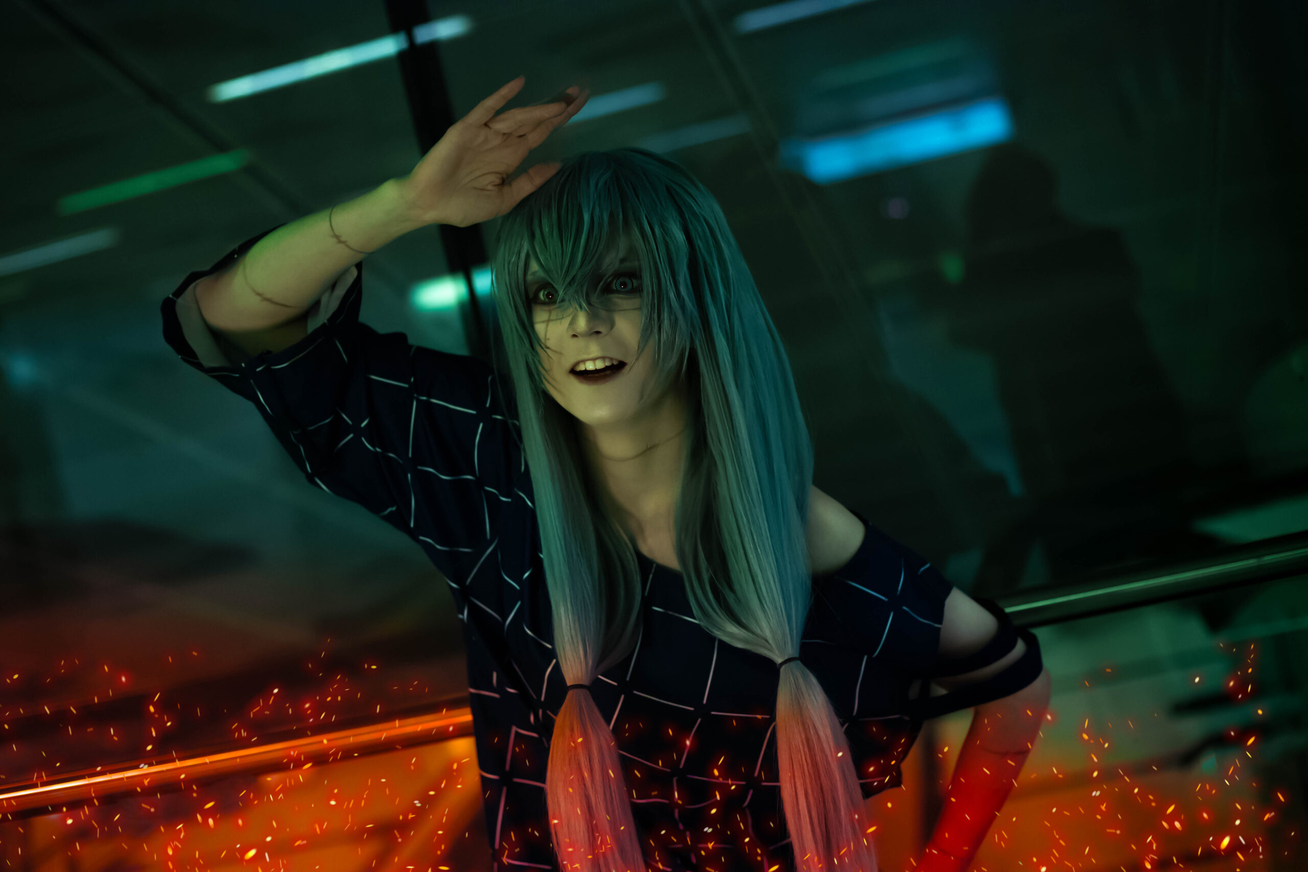 Ich habe dieses Cosplay komplett aus Second-Hand-Utensilien erstellt. Auch habe die Props für den Halloween-Flair angepasst. Horror steht hier im Vordergrund.